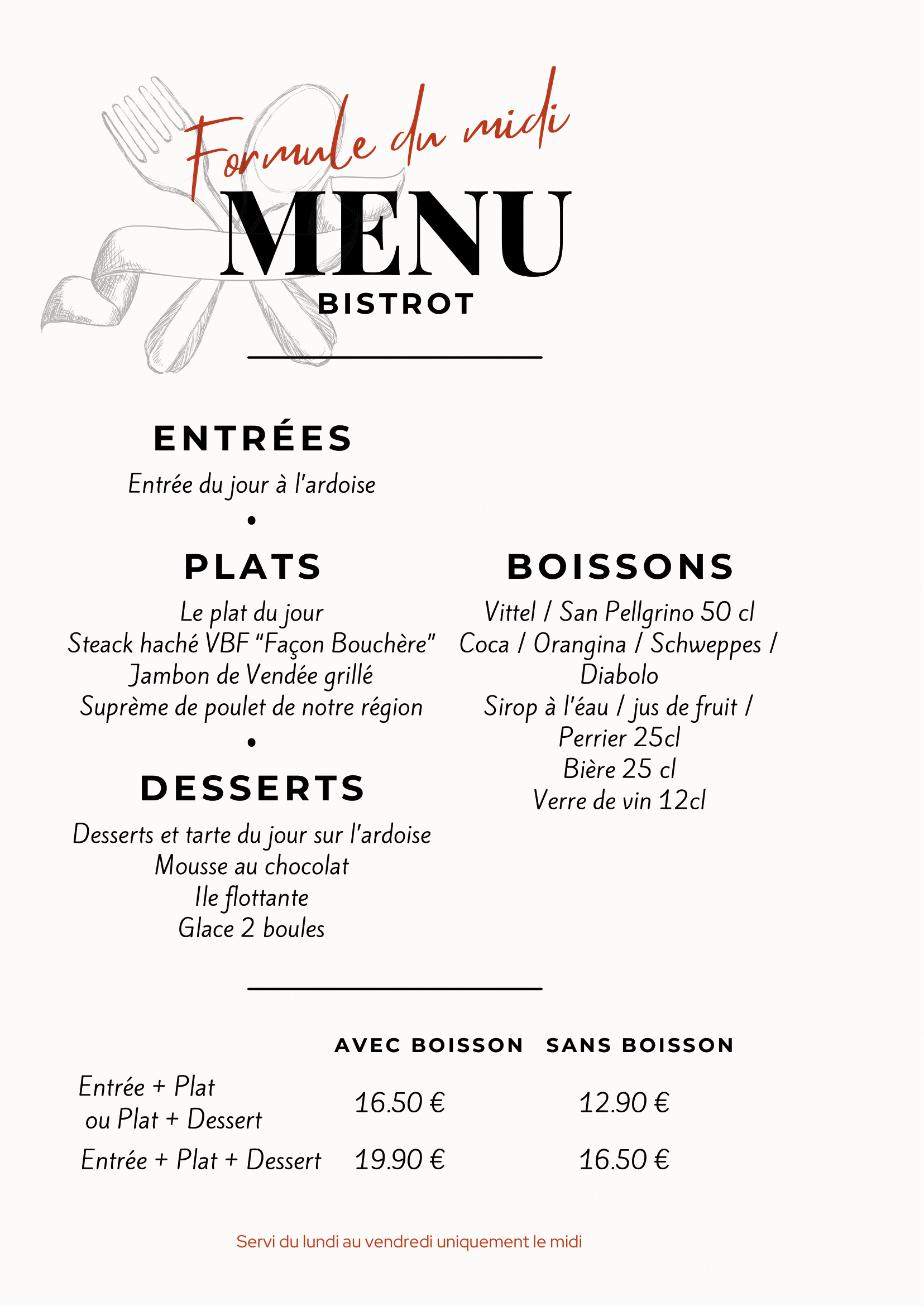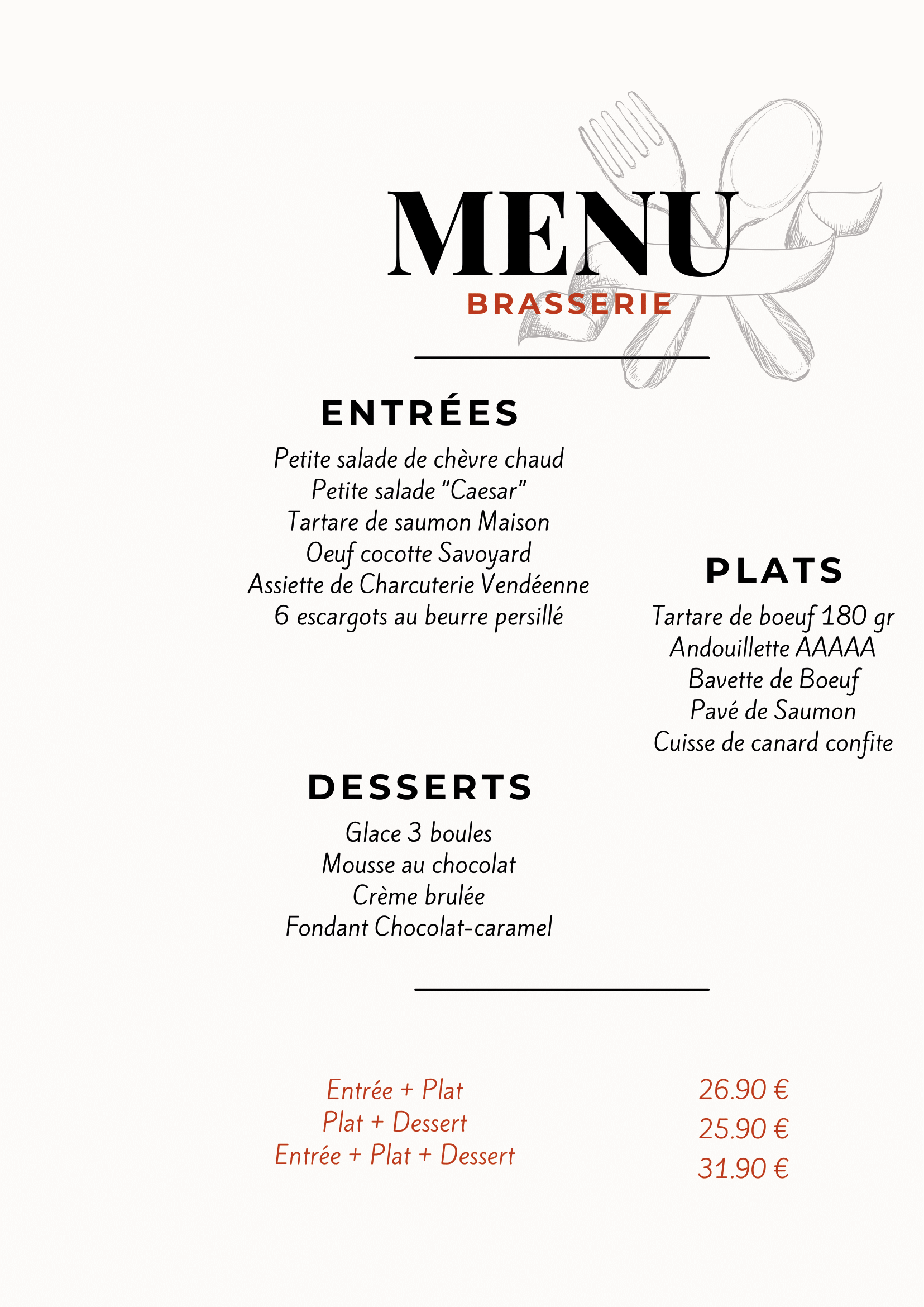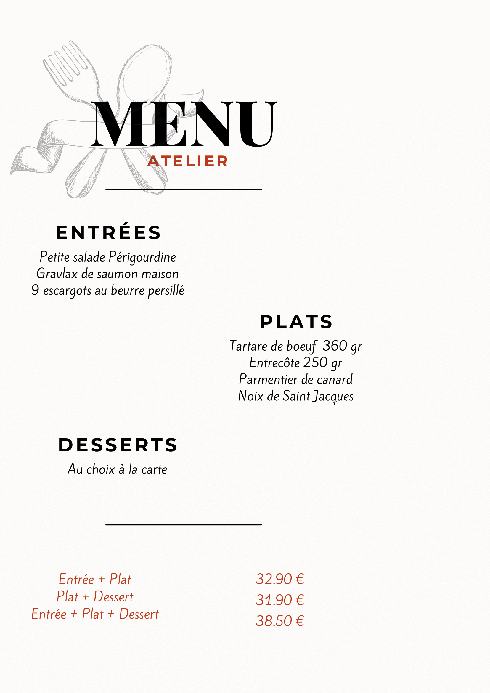 Le restaurant L'Atelier vous propose son menu avec ses différents plats :